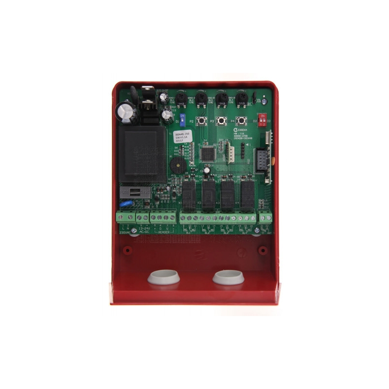 Receptor IRIN 4B-250 de la marca ERREKA. Con salida de 12/24Vac/dc. Frecuencia de trabajo 433.92 MHz de código FIJO y EVOLUTIVO tipo KEELOG con 250 códigos de 4 canales.